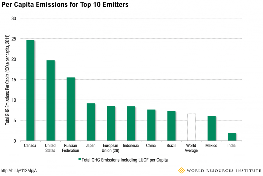 Figura 7: Emisiones totales, per cápita y por output (World Resource Institute)